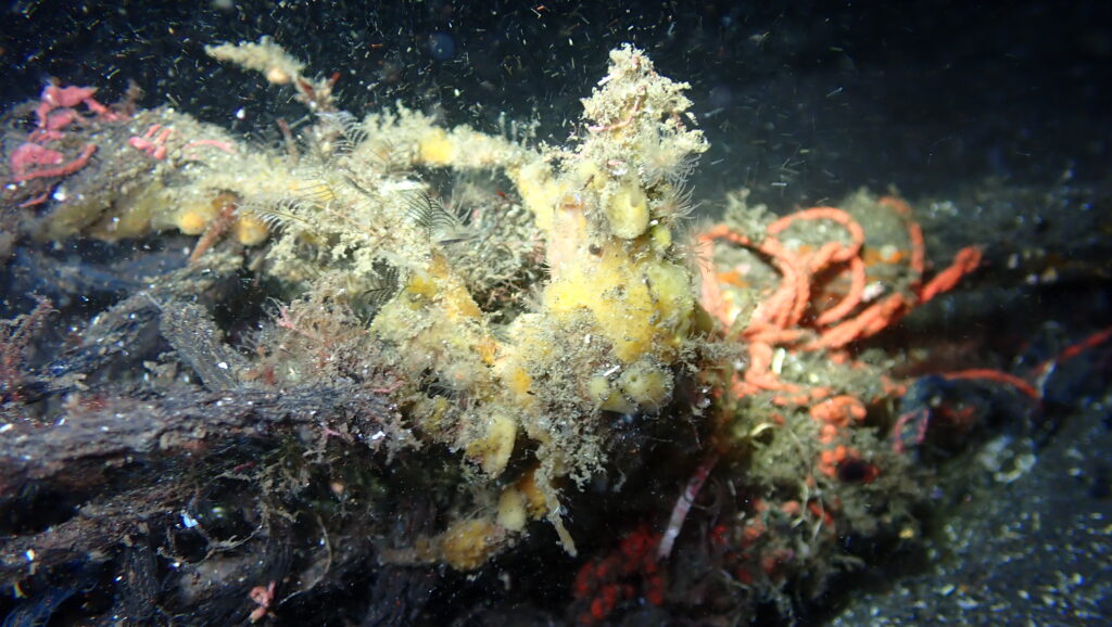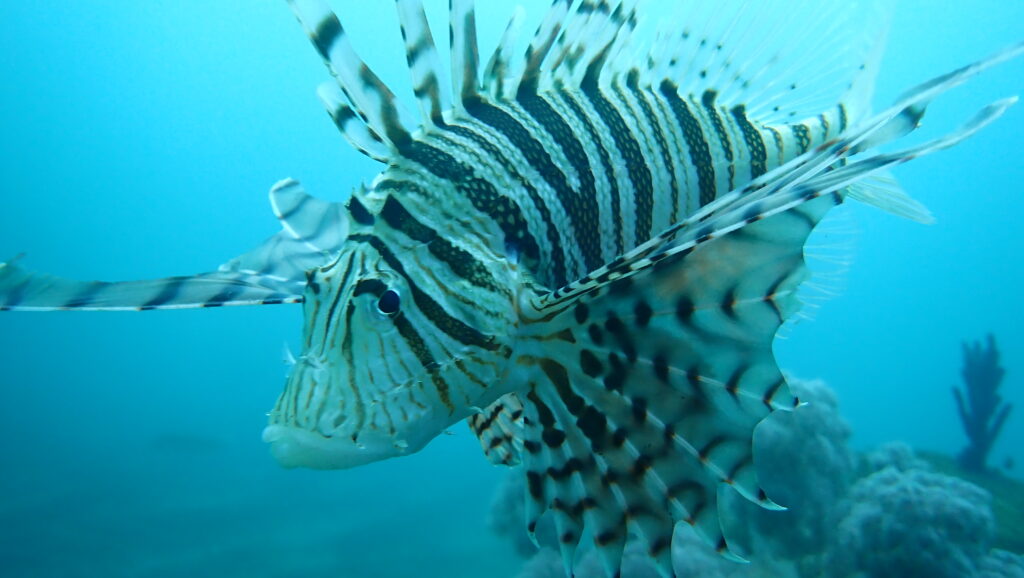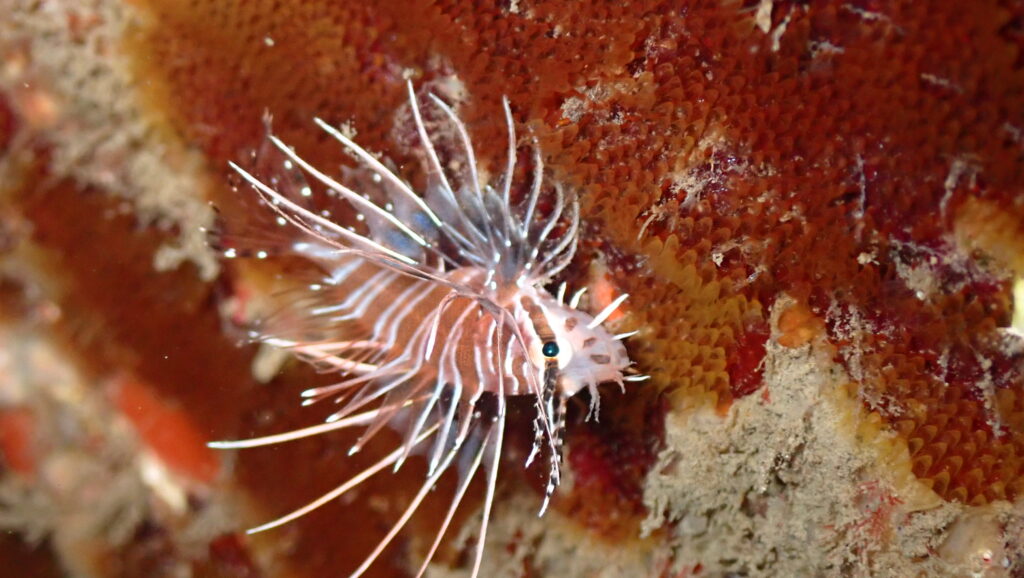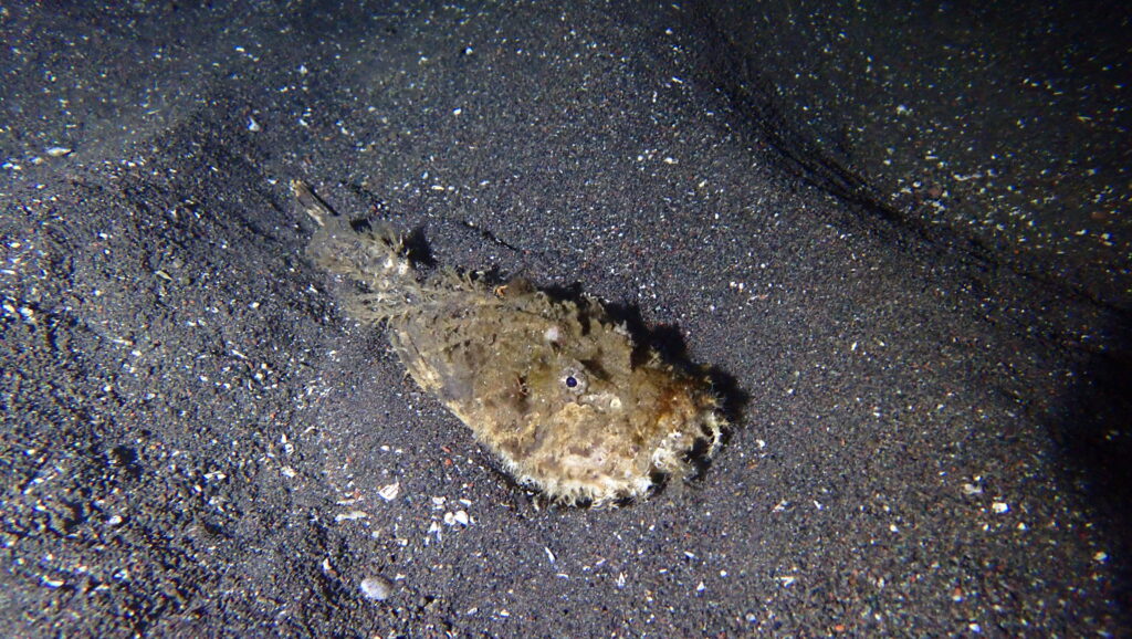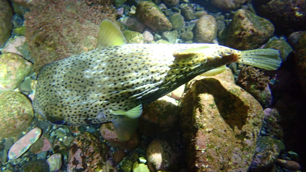浅場にはやんわりケンカしてるカサゴやネズミフグ。