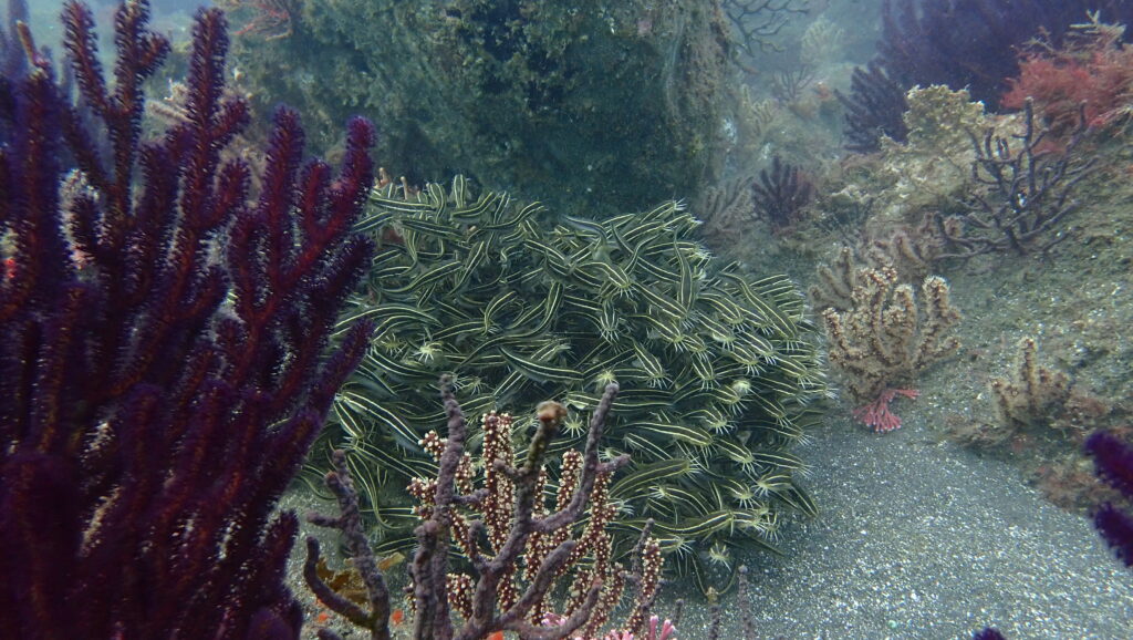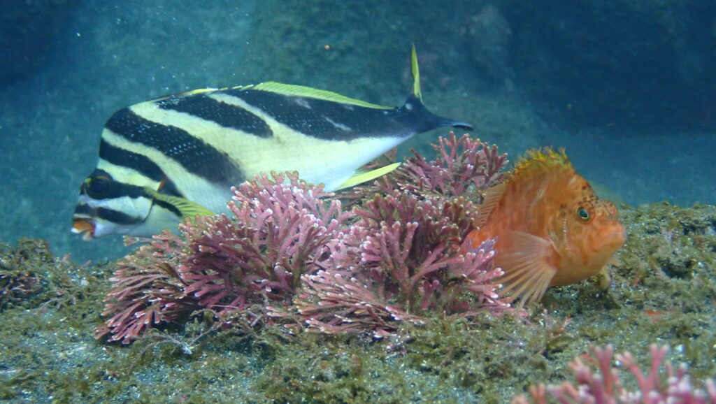 ヨコシマクロダイは広範囲に3個体までは確認