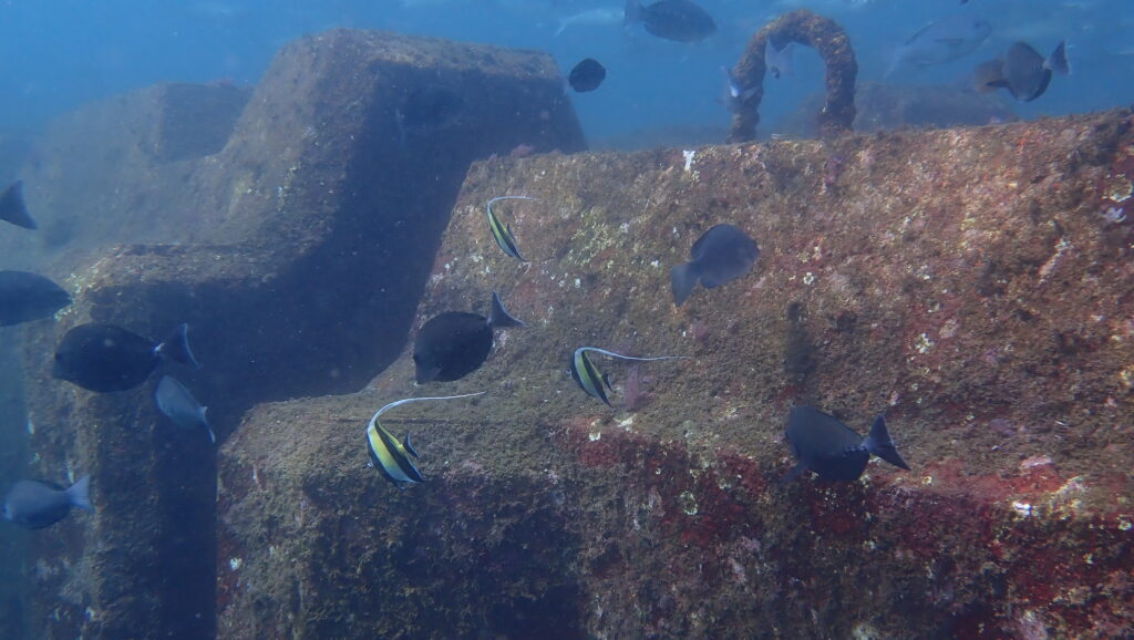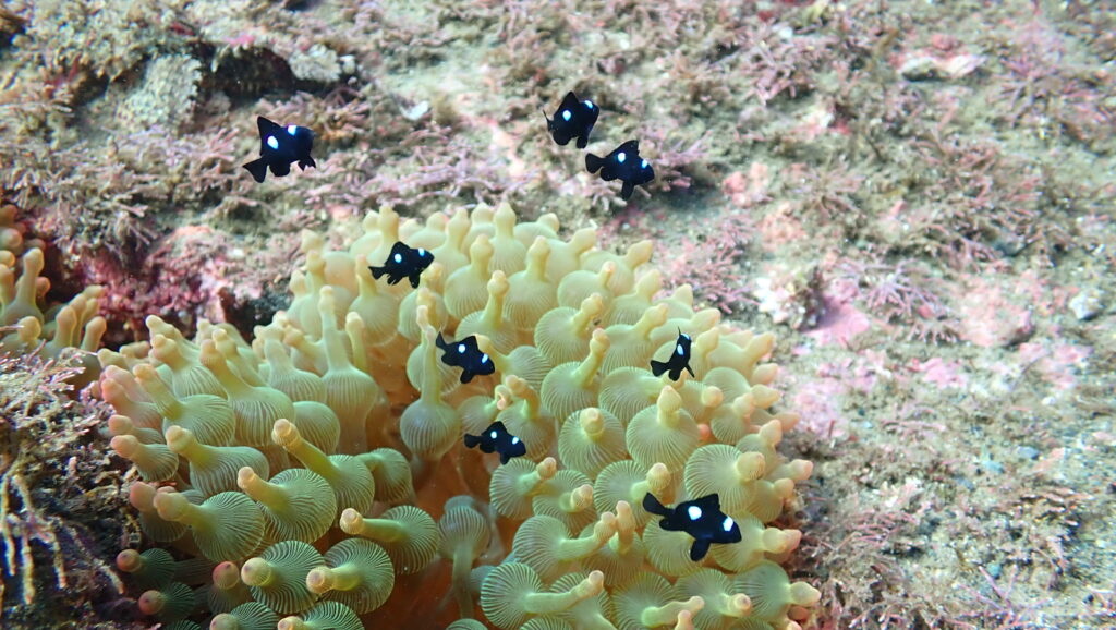 水温21℃。透視度変わらずストレス無しです。白っぽいですが10~15くらい。