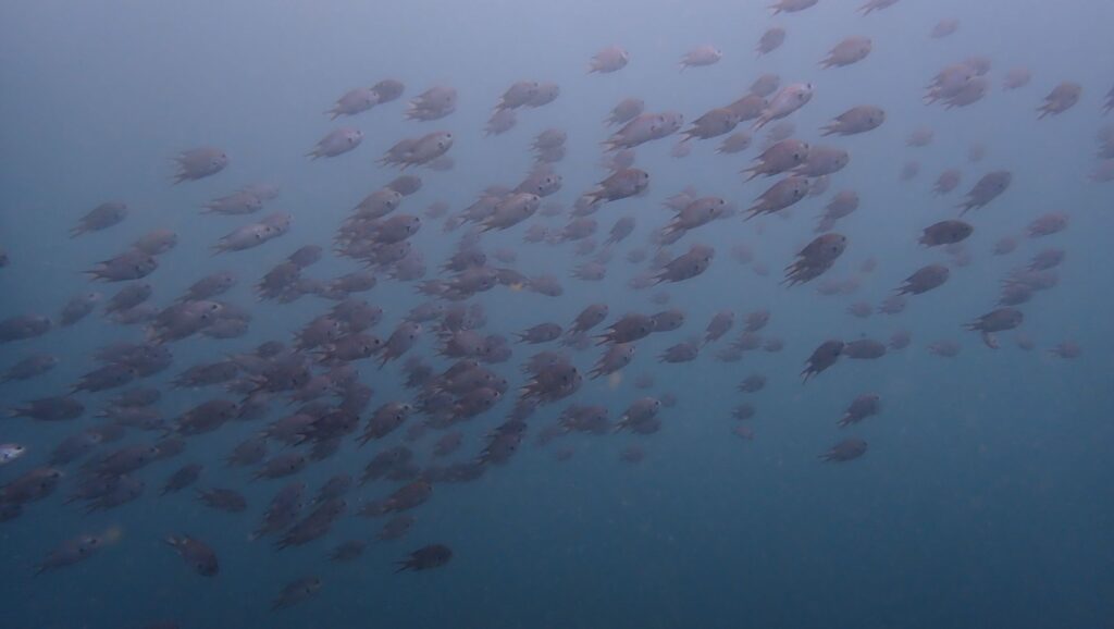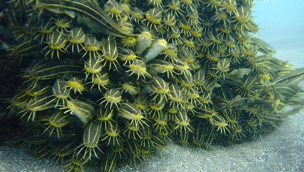 あまり刺激しないよう遠目からパシャリ。久しぶりに大きなネコザメみました。