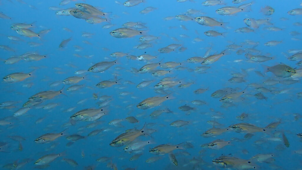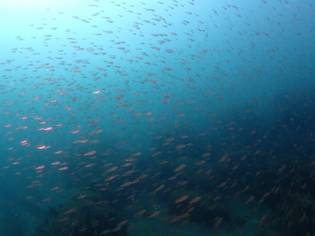 日中の群れもすごい良いですが今日は爆弾低気圧のような爆弾イワシの群れに遭遇。