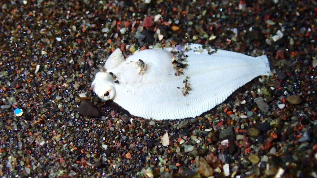 真っ白で可愛いよねぇ。メイタガレイ沖だけかと思ったら漁礁手前にもいたようです。