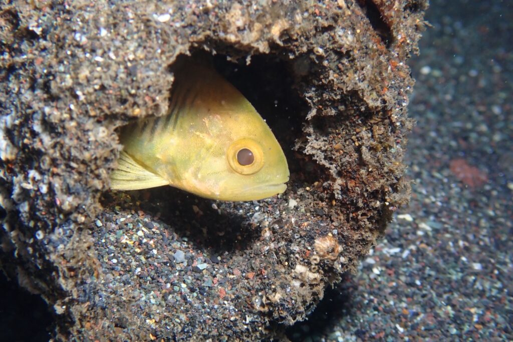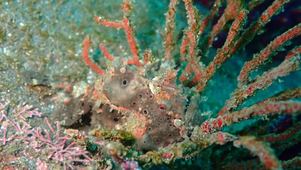 5か目ナイトではミノカサゴ幼魚いたり。カエルいたり。